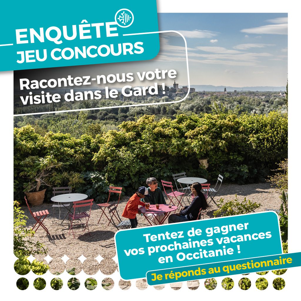 Afin de collecter un maximum de questionnaires, le CRTL et ses partenaires organisent un jeu-concours avec des lots à gagner d’une valeur totale de 7 000€, dont une partie est financée par le Gard Tourisme et l'Office de Tourisme de Nîmes avec la mise en jeu de son lot "Un séjour exceptionnel au cœur de Nîmes".