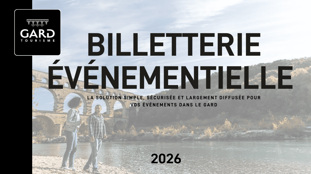 Ce service, proposé par Gard Tourisme, offre aux organisateurs d'événements lucratifs un système de vente de billets en ligne géré par nos soins. La création de la billetterie en ligne de votre événement via nos services assure une diffusion optimale dans l’univers touristique du Gard et vous garantit un accompagnement personnalisé pour vos ventes.